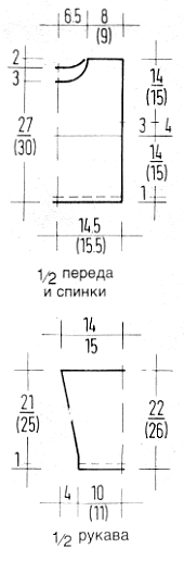 каждом 2-м р. 1 раз 4 п. и 1 раз 3 п. Оставшиеся по 21 (23) п. плеча закрыть в одном ряду через 2 см