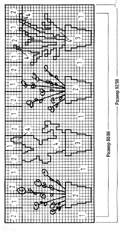 1 (8) раз в каждом 8-м р. и 9 (2) раз в каждом 6-м р. по 1 п. = 70 (74) п. Через 22 (26) см от