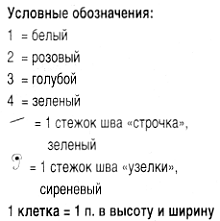 технике так: 1-й - 6-й р.: кром. п., 2 (5) п. розовых,* 5 п. белых, 5 п. розовых, повторять от *, закончить – 5 п. белых,