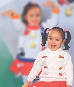 Сборка: пришить рукава в отмеченные булавками проймы. Сшить боковые швы. Пришить отделочные розочки.