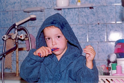 Даже чистка зубов у нас превращается в шоу. Я купила ему халат, так он его не снимал практически.