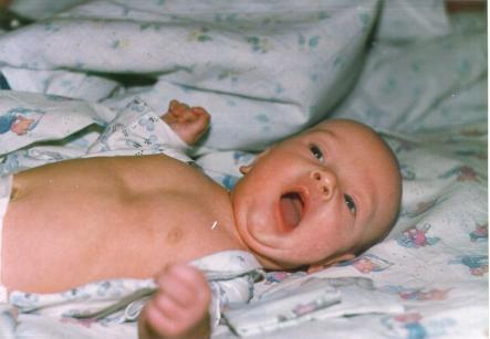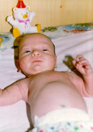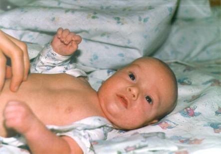 Отмечали первую "месячину", умаялся, отдыхает...