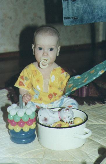 Вот такая у нас половая жизнь: прыгунки, кастрюля с игрушками и соска в качестве заглушки