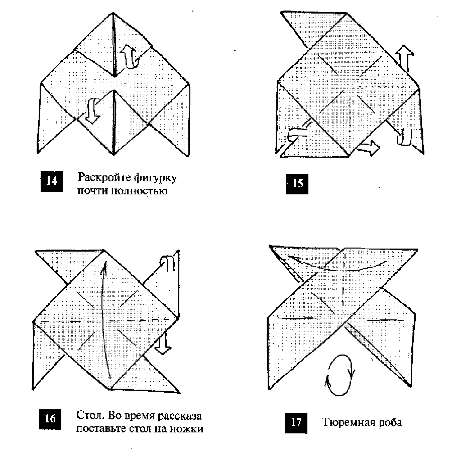 Бумажная сказка про пирата Жил да был на берегу моря ленивый крестьянин. Достался ему в наследство от отца вот такой кусок земли (см. рисунки: рис. 1). Не родила земля у ленивого да беспечного работника, а жить-то на что-то надо. Продал крестьянин четыре куска земли (рис. 2), а вырученные деньги быстро прогулял. Стало у него земли меньше (рис. 3). Прошло совсем немного времени, и пришлось крестьянину продать ещё четыре куска земли (рис. 4), а потом и ещё четыре (рис. 5). Осталось у него земли совсем чуть-чуть, даже ногу не на что поставить. Что делать? "Подамся-ка я в пираты", - подумал крестьянин и сел на первый подвернувшийся пиратский корабль (рис. 8). Завел себе, как у остальных пиратов, заправскую пиратскую шляпу с большим козырьком и широкими полями (рис. 9). У проезжих купцов разбоем отнял кожаные сапоги (рис. 10) и широченные штаны (рис. 12), а вместо рубахи стал носить тёплый свитер (рис. 13) - ведь на море по утрам бывает холодно! Долго разбойничал пират, но всему приходит конец. Поймали его, связали и усадили за стол для допроса (рис. 16) о пиратских чёрных делах. Сурово осудили за них бывшего крестьянина, выдали ему жёсткую тюремную робу (рис. 17) и бросили в темницу. Но недолго сидел в ней пират. Тёмной ночью выломал он тюремную решётку, спустился по скале к морю и прыгнул в лодку с парусом (рис. 18). Утро застало пирата уже в открытом море. "Как бы не заметили из крепости мой парус", - подумал пират и убрал его (рис. 19). При свете дня увидел пират на дне лодки два сундука. Обрадовался он, кинулся к первому и открыл его (рис. 20), но там ничего не оказалось. Огорчился пират и в сердцах выкинул его за борт. Открыл второй сундук (рис. 23) - но и там было пусто. Выкинул и его (рис. 24). "Не везет мне в жизни", - подумал пират - "видно ленью да разбоем счастья в жизни не наживёшь!" Подумал так и пошёл просить у добрых людей милостыню: "Бросьте монетку в коробочку!" (рис. 26). Рисунки: |