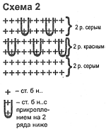 Обвязать края пончо крючком по схеме 2. Сплести из разноцветных ниток косички и шнуры и пришить к пончо.