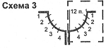 Перед: вязать как спинку до точки А. Разделить вязание, закрыв 3 центральные петли. Убавлять петли 40 р. как на спинке, вывязать горловину укороченными рядами по схеме 3.