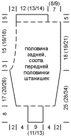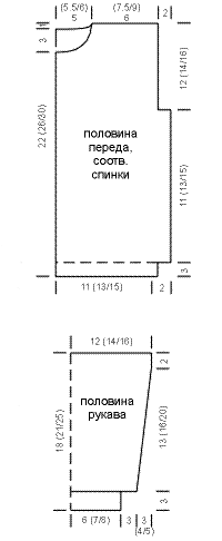 На схеме приведена левая полочка и указана средняя петля рукава.