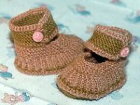 Левая пинетка: начать с подошвы. Набрать 32 п., петли распределить на 4 спицы и вязать платочной вязкой. Переход от одного ряда к другому располагается на задней линии середины. В 3-м ряду после 1-й п. 1-й и 3-й спиц и перед последней петлей 2-й и 4-й спиц из протяжки прибавить по 1 лиц. скрещенной петле. Эти прибавки повторить еще 3 раза в каждом 2-м ряду, при этом прибавлять для 1-й и 3-й спиц после и для 2-й и 4-й спиц перед последней прибавленной петлей = 48 п.