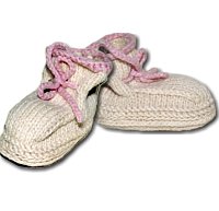 Сборка: Детали отутюживаем, сшиваем башмачок, соединяем его с подошвой, обвязывая крючком по лицевой стороне крючком. В отверстия ажурного ряда продеваем шнурок или ленту, тесьму.