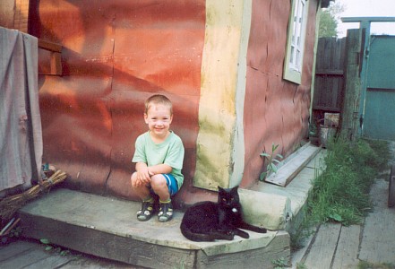 Мы, как всегда, ездили к бабушке в деревню. Фотографий у нас, правда, мало, что-то наш фотоаппарат барахлил. Но зато Егор запечатлен исключительно в качестве помощника по хозяйству: идет за малиной, пилит доски, несет белье в стирку, нянчится с племянником. А на последней фотографии - Егор и тот самый Васька, с которым они песни сочиняли.