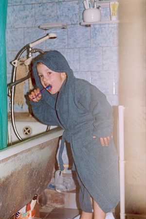 Даже чистка зубов у нас превращается в шоу. Я купила ему халат, так он его не снимал практически.