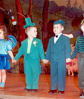 Второе выступление на сцене. На этот раз - отчетный концерт школы, на нем обычно вручают дипломы выпускникам и подарки школе от благодарных родителей. В этот раз Егор вообще не пел. Все норовил посмотреть, что делается у него за спиной и весьма откровенно подмигивал кому-то со сцены (фотографии еще будут, просто у меня их расхватали, я не успела сосканировать).