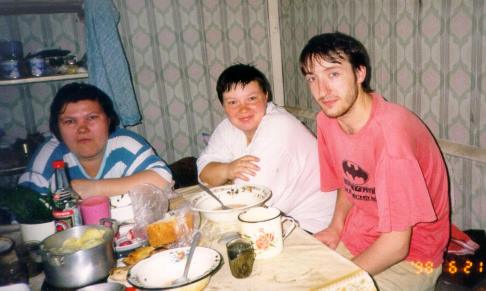 На даче у моих родителей, после рыбалки едим уху.