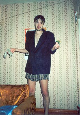 Лешка решил повесить белье Не нашел ничего лучше, чем накинуть мой пиджак Идем в гости, Леха снимает А тут возвращемся, теперь снимаю я
